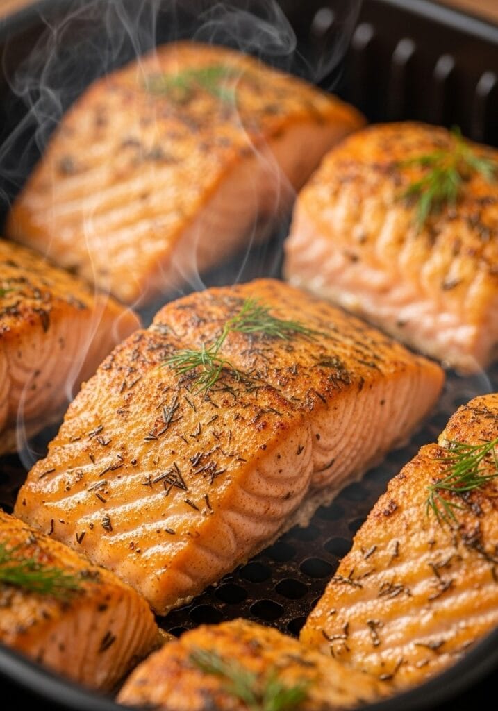 The air fryer method uses minimal oil compared to pan-frying, so you’re not adding unnecessary calories. The salmon’s natural oils are more than enough to keep it moist and flavorful.