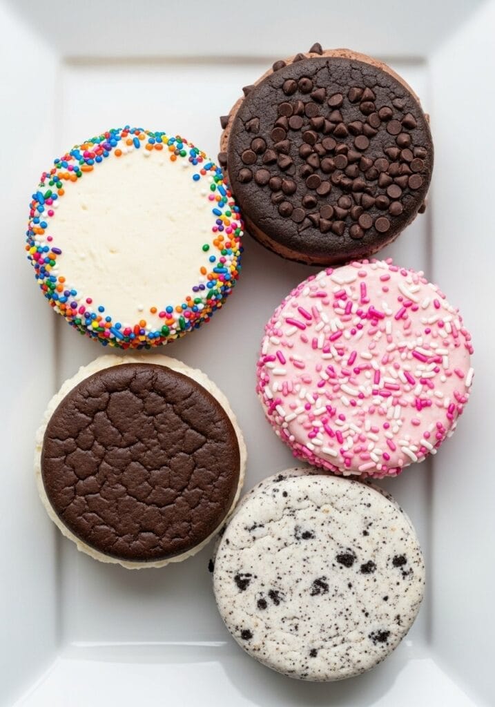 The cookies themselves can be flavored differently too. Add cocoa powder for chocolate cookies, lemon zest for citrus cookies, or espresso powder for a coffee twist.