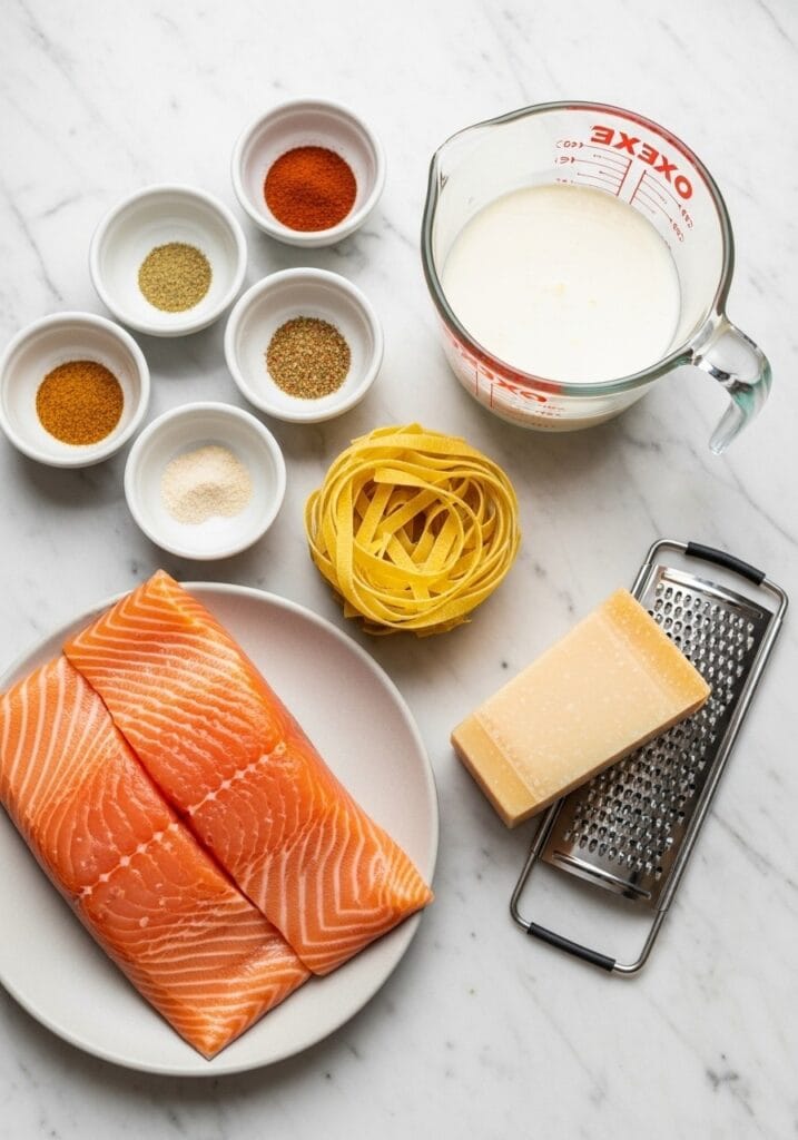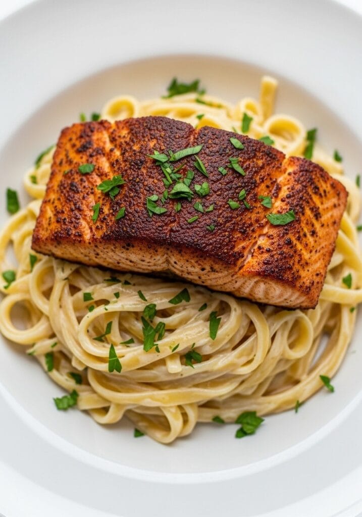 Unlike typical salmon alfredo pasta cajun recipes that drown the fish in sauce, this version keeps things balanced. The salmon gets seared separately with a gorgeous crust, then rests on top of the pasta rather than mixed in. This way, each component shines.