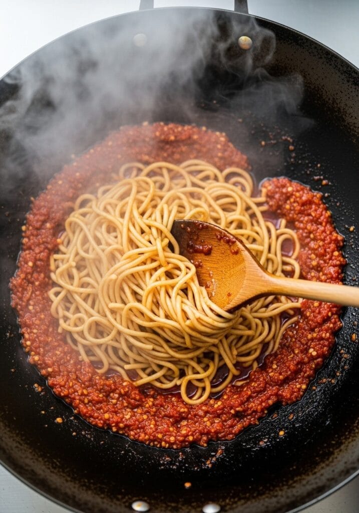 What I love most is how forgiving this recipe is. Forgot to pick up fresh noodles? Use dried pasta. Want it spicier? Add more chili. Need it milder? Scale back. It’s the kind of recipe that adapts to what you have and what you’re craving.