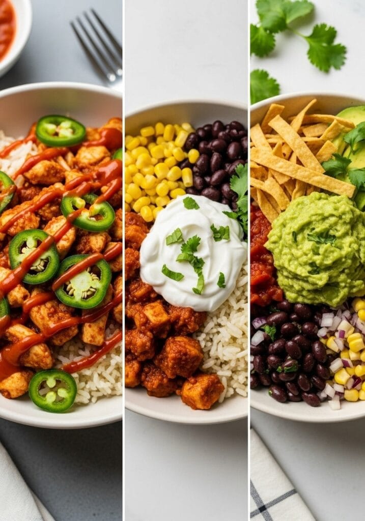 The key is balancing temperatures and textures – warm rice and chicken with cool, crisp vegetables and creamy toppings. Every bite has something different happening, which keeps these bowls interesting even when you’re eating them multiple times a week.
