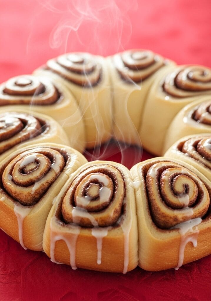 If you’re prepping ahead, you can refrigerate the shaped wreath overnight after step 18. Cover tightly with plastic wrap, then let it sit at room temperature for 45 minutes before baking the next morning. The slow cold rise actually improves the flavor.