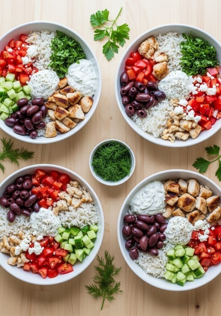 This isn’t just another grain bowl. The marinated chicken stays incredibly juicy (thanks to the olive oil and lemon combo), while the rice acts as a neutral canvas for all those bold Mediterranean flavors. Each bite gives you protein, carbs, healthy fats, and plenty of fresh vegetables.
