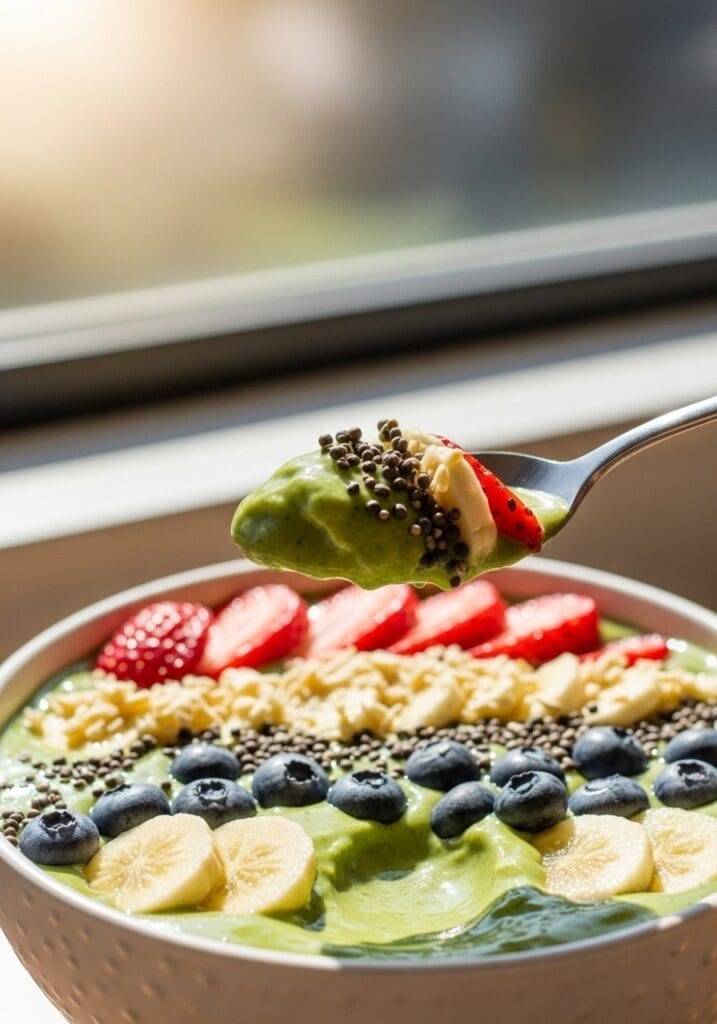 The toppings also slow you down. Instead of gulping a smoothie in two minutes, you actually sit and enjoy this bowl, which helps with digestion and satiety. There’s something satisfying about the contrast between cold, creamy base and crunchy granola or fresh fruit.