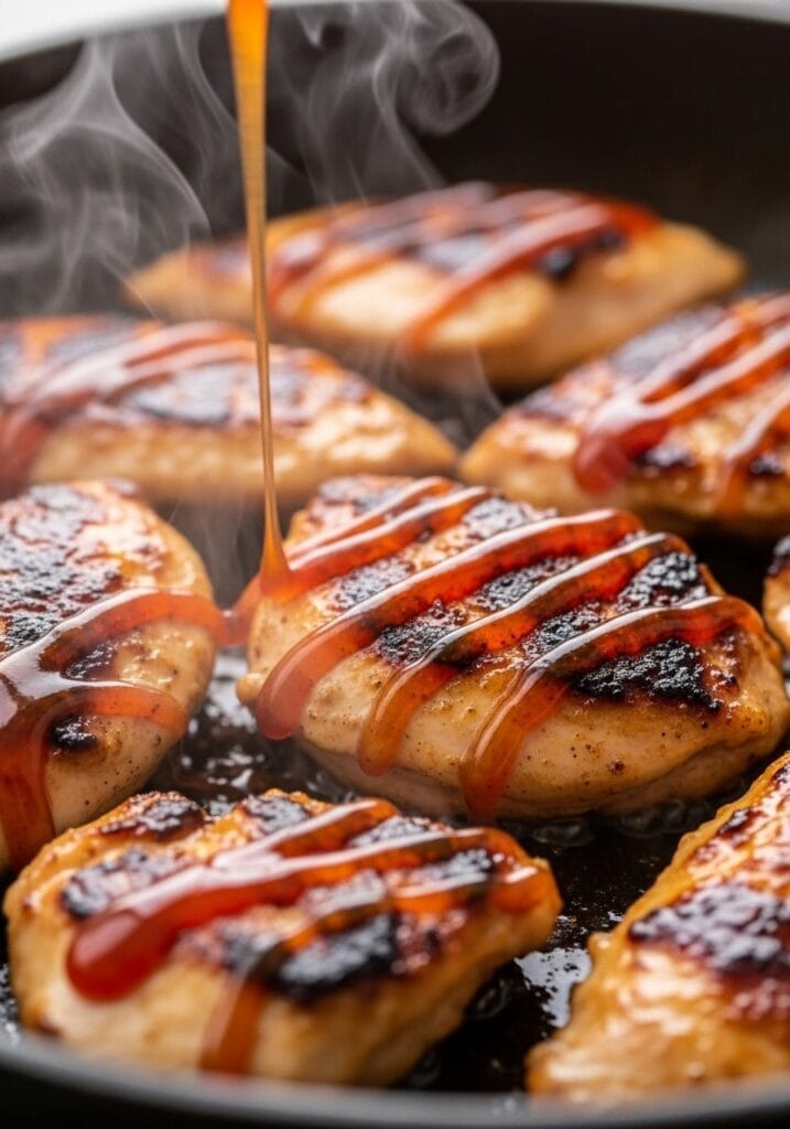 Reduce heat to medium. In the same skillet (don’t wipe it clean – those browned bits are flavor), pour in your prepared honey sriracha sauce. It will bubble immediately. Stir constantly for 2-3 minutes, scraping up all the caramelized bits from the bottom. The sauce will thicken noticeably and reduce by about one-third. You’ll know it’s ready when it coats the back of your spoon and drips slowly rather than running off quickly.