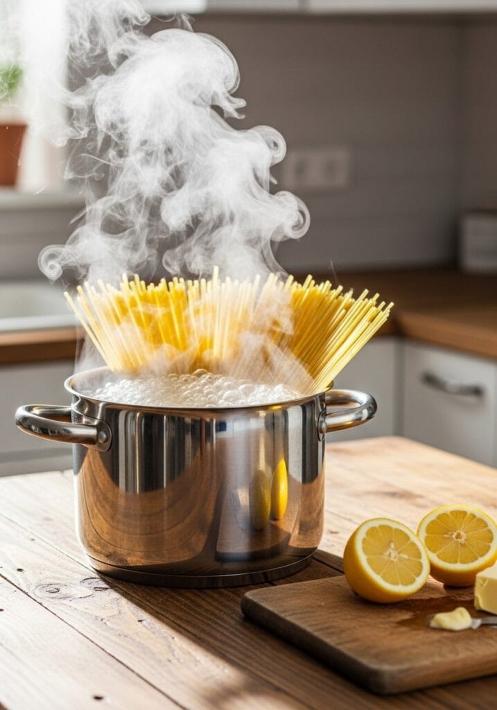 Step 1: Bring 4 liters of water to a rolling boil in a large pot over high heat. Add 2 tablespoons of salt. The water should taste like the sea – this is your only chance to season the pasta itself.