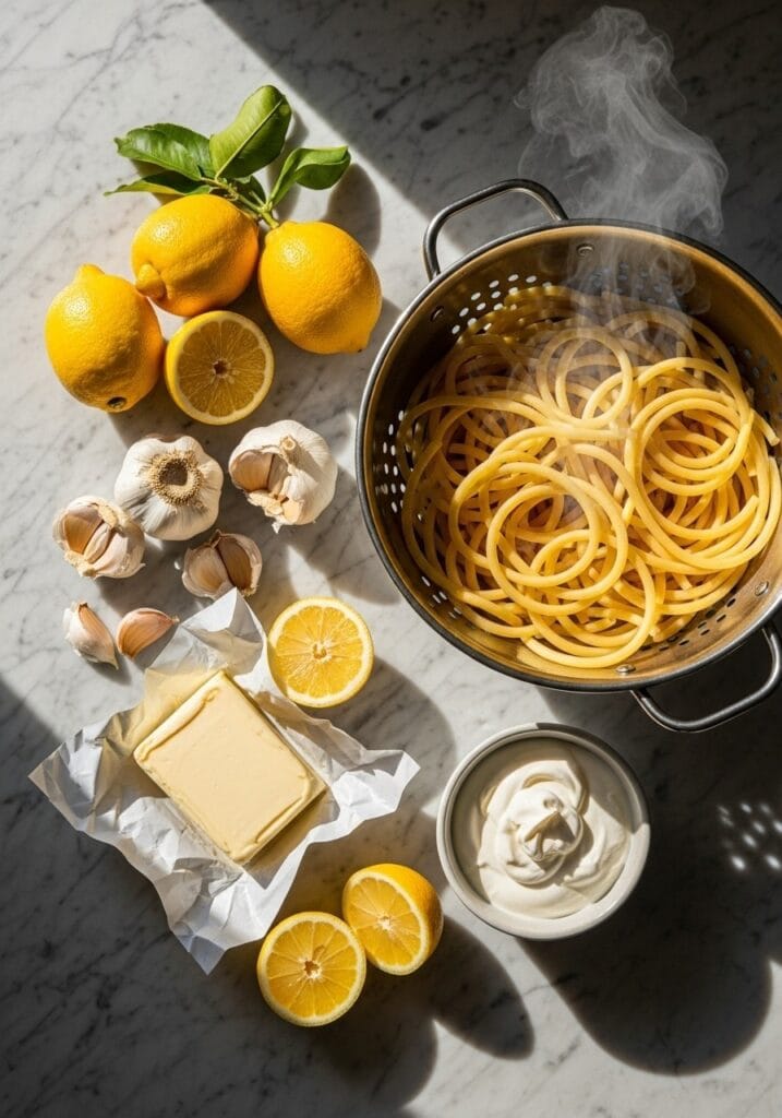 This dish takes about 20 minutes from start to finish, requires basic cooking skills, and delivers a bright, creamy, slightly tangy flavor profile. Whether you’re cooking for one or feeding a family, this lemon butter pasta adapts beautifully. You can keep it simple or add protein like chicken or shrimp to make it heartier.