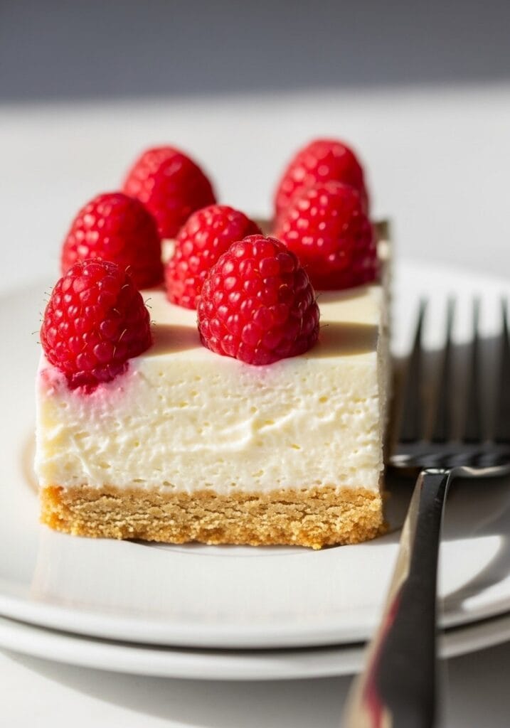 The taste profile is bright and refreshing. You get that tangy lemon flavor balanced with sweet cream cheese and juicy raspberries. The graham cracker crust adds a buttery crunch that ties everything together.