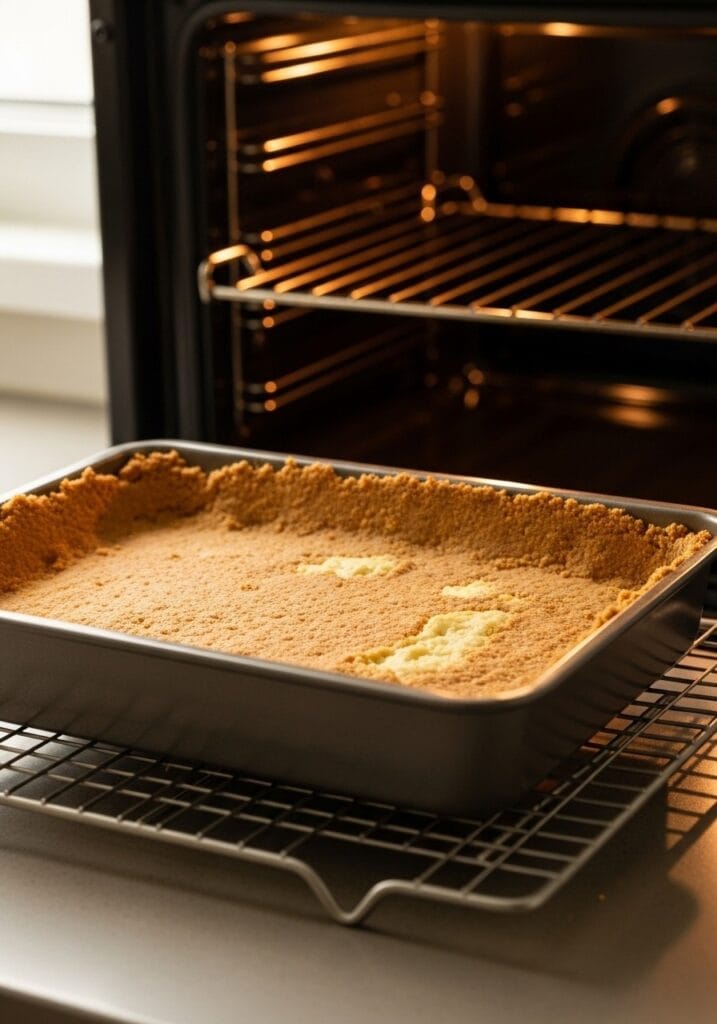 Line your 9×9 inch baking pan with parchment paper, leaving some overhang on two sides. This makes lifting the bars out super easy later. Preheat your oven to 350°F (175°C).