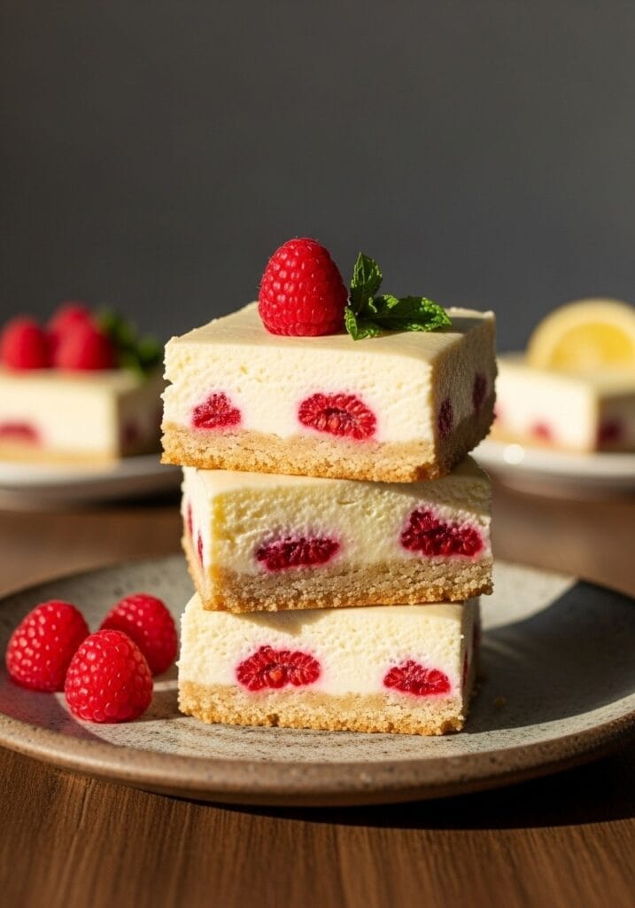 What makes these bars special is the cream cheese layer. It’s tangy from the lemon but still rich and smooth. The raspberries add little bursts of sweetness and that pop of color. They’re sweet enough to satisfy dessert cravings but not so heavy that you feel guilty grabbing a second piece.