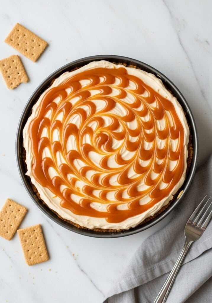 Crumble 1 cup of baked brownies and press them into the crust layer before adding the filling. This adds a fudgy chocolate element that pairs beautifully with the caramel. You can also swirl some melted chocolate into the filling for extra richness.