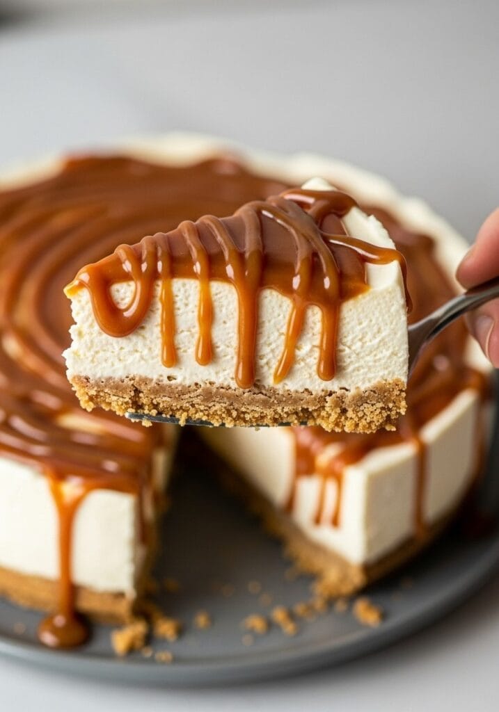 The texture is incredibly smooth, almost mousse-like, but still has that classic cheesecake density. The caramel adds a layer of flavor that makes this feel special without being overly sweet. And because there’s no baking involved, it’s perfect for summer when you don’t want to turn on the oven, or anytime you need a dessert that looks fancy but doesn’t require professional skills.