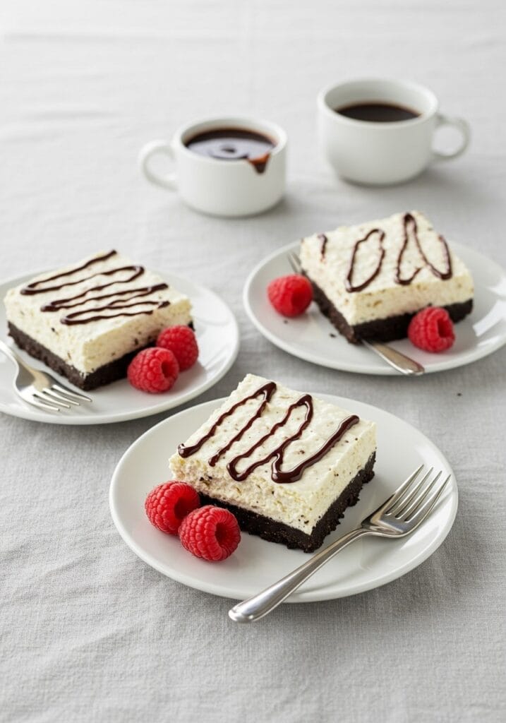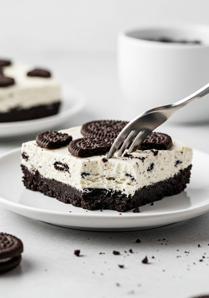 The texture is what really gets me. That buttery Oreo crust is firm but not hard, the cream cheese filling is silky and tangy-sweet, and those crushed cookies on top add the perfect crunch. Plus, since there’s no oven involved, you can make these even on the hottest days without heating up your kitchen.