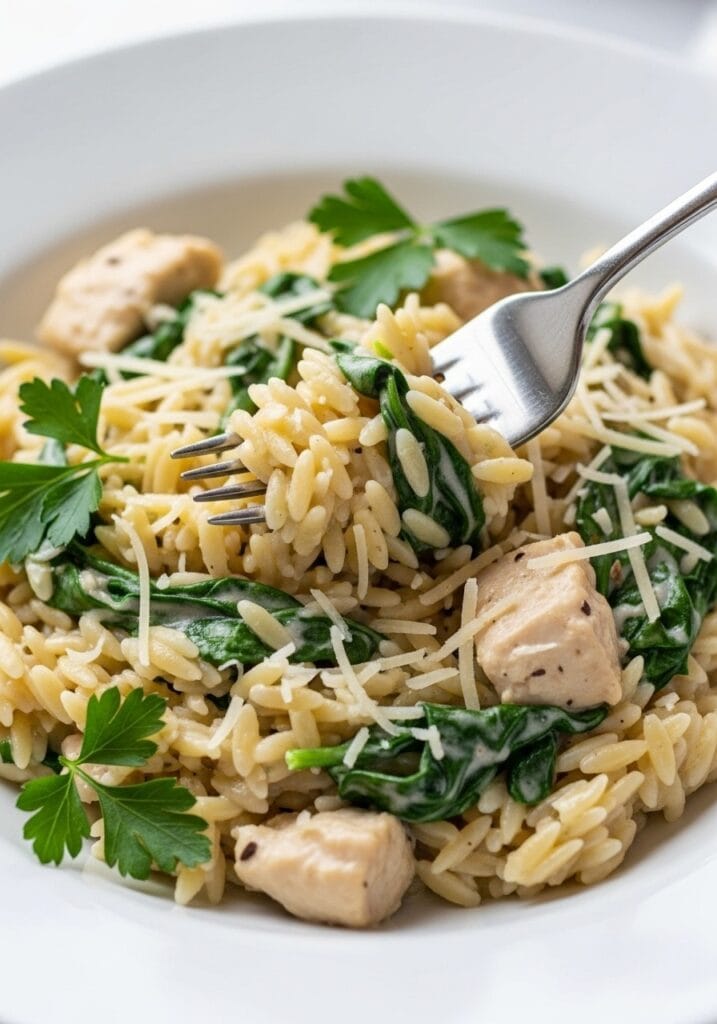 For a creamy lemon chicken orzo version, double the lemon juice and add lemon zest right at the end. It brightens everything up and feels almost spring-like even in the middle of winter.