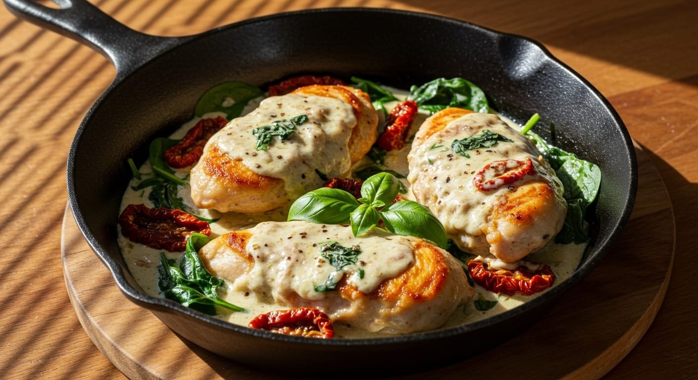Tuscan Chicken Skillet with Sun-Dried Tomatoes and Spinach