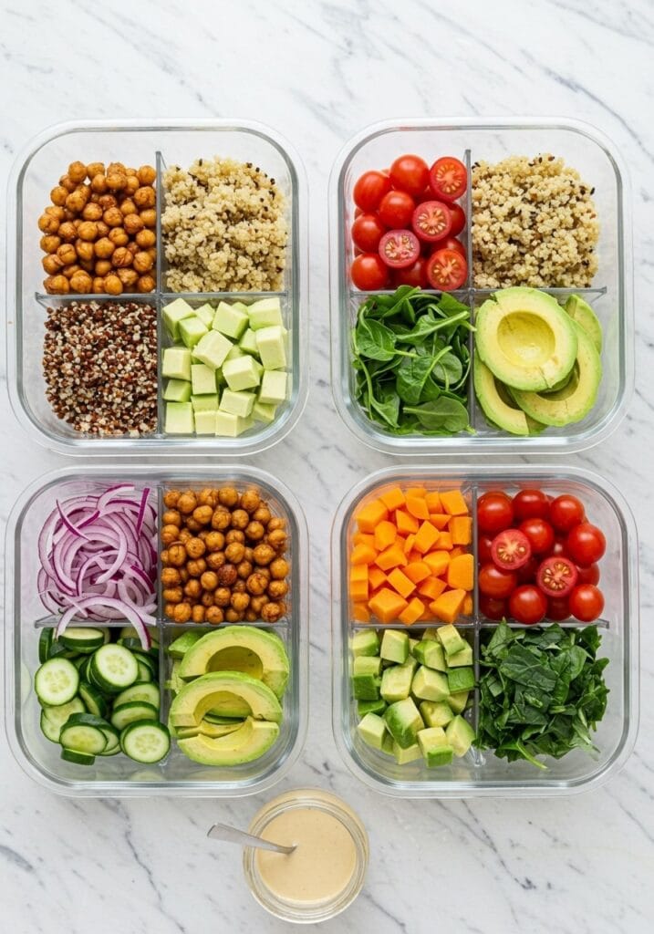 When you’re ready to eat, just assemble your bowl, drizzle the dressing, and you’re good to go. It takes maybe 5 minutes if everything’s prepped.