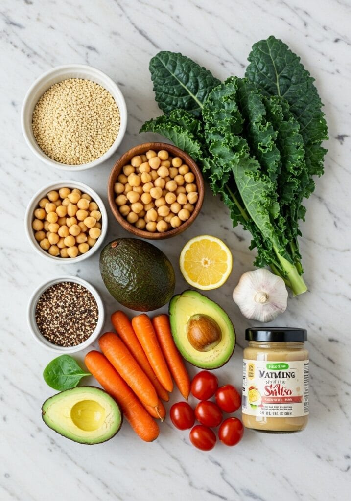 Let’s talk about what goes into these quinoa chickpea Buddha bowls. Each ingredient plays a role, and together they create a bowl that’s balanced in nutrition and taste.