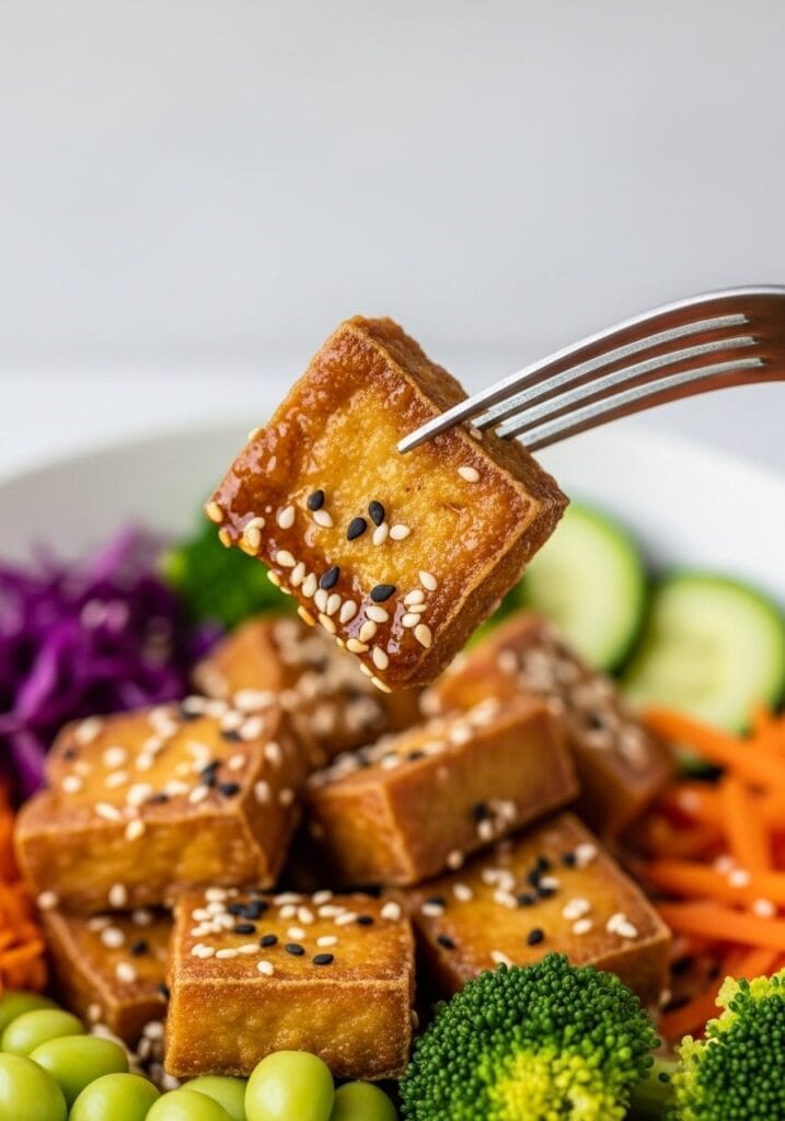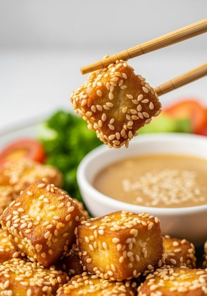 Step 10: Garnish with sliced green onions, extra sesame seeds, and a lime wedge. Serve immediately while tofu is warm and crispy.