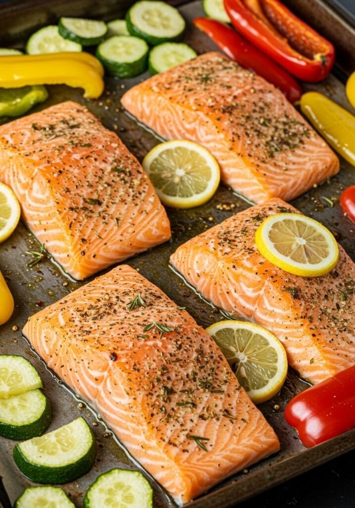 Sometimes I swap the lemon-herb seasoning for a honey-garlic glaze, similar to my baked honey garlic salmon. Just mix 2 tbsp honey with 2 minced garlic cloves and 1 tbsp soy sauce, then brush it over the salmon halfway through cooking. The vegetables get a touch of sweetness too, which works surprisingly well with the caramelization.