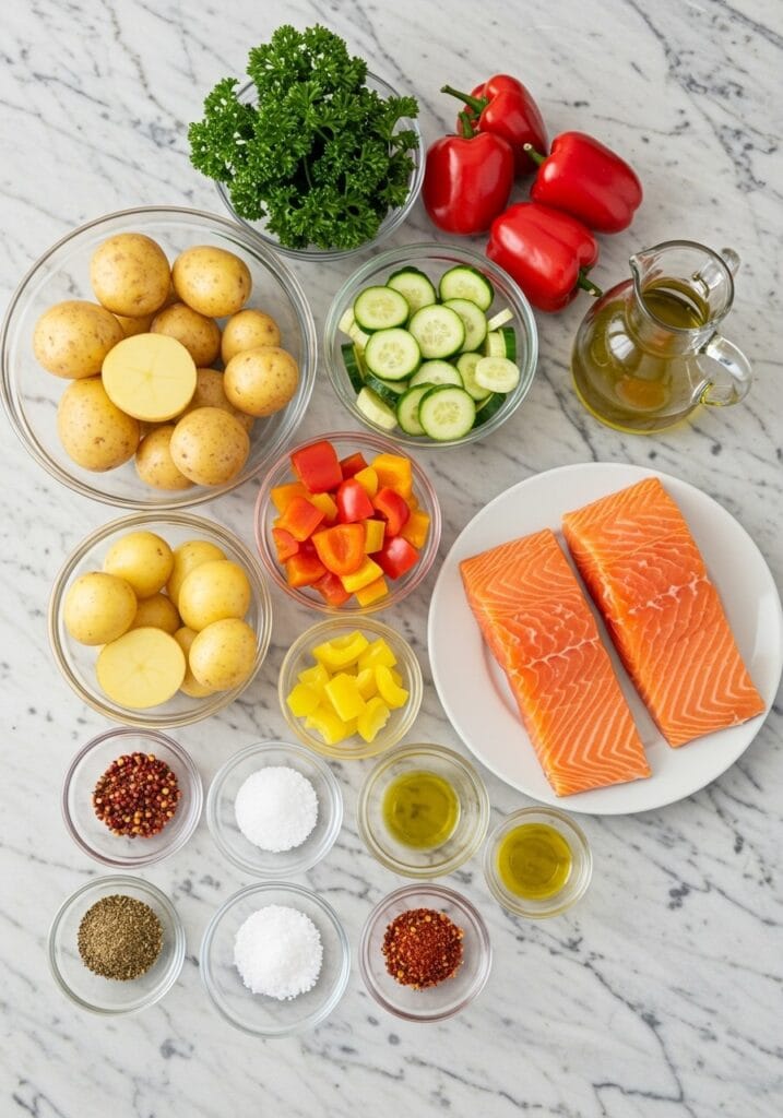 If you’re following a lower-carb plan like I sometimes do with my keto salmon avocado bowls, skip the potatoes entirely and double up on the zucchini and bell peppers. Add some broccoli florets too.