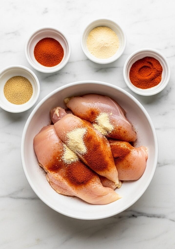 Pound the chicken evenly. If your chicken breasts are thick, pound them to an even thickness (about ¾ inch) before seasoning. This ensures they cook evenly and don’t dry out.
