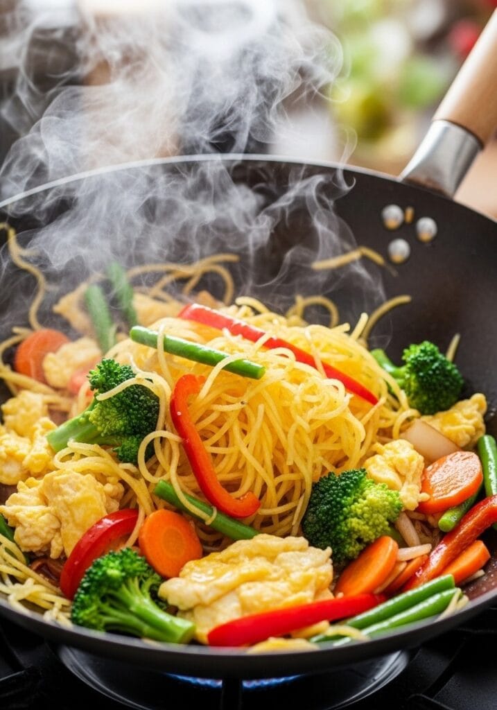 Plus, this version packs in veggies without trying too hard. Bell peppers, carrots, and bean sprouts add color and crunch. You’re basically sneaking in half your daily veggie intake while thinking you’re just eating takeout-style comfort food.