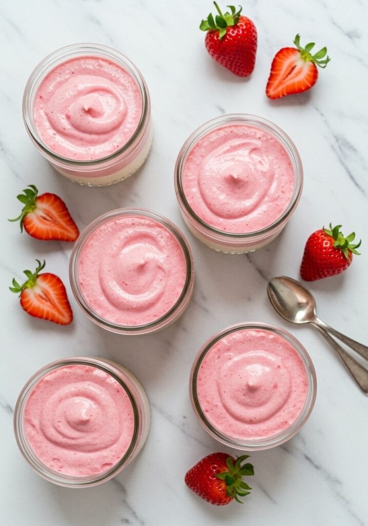 The recipe is also forgiving. Too much mousse? No problem, make extra jars or save it for later. Strawberries a bit tart? Add more sugar. Cake too soft? Use less strawberry juice in that layer. It adapts to what you have and how you like things.