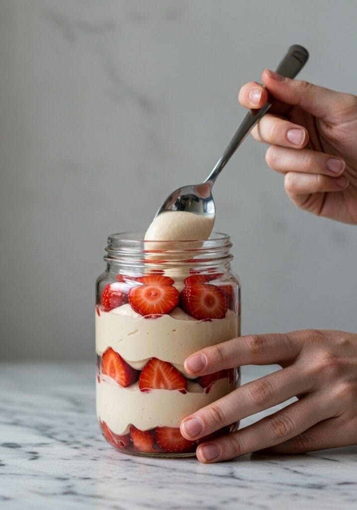 Once you’ve mastered the basic strawberry shortcake mousse jars, the variations are endless. I’ve swapped strawberries for mixed berries – blueberries, raspberries, and blackberries all work beautifully. The tartness of raspberries is especially nice against the sweet mousse.