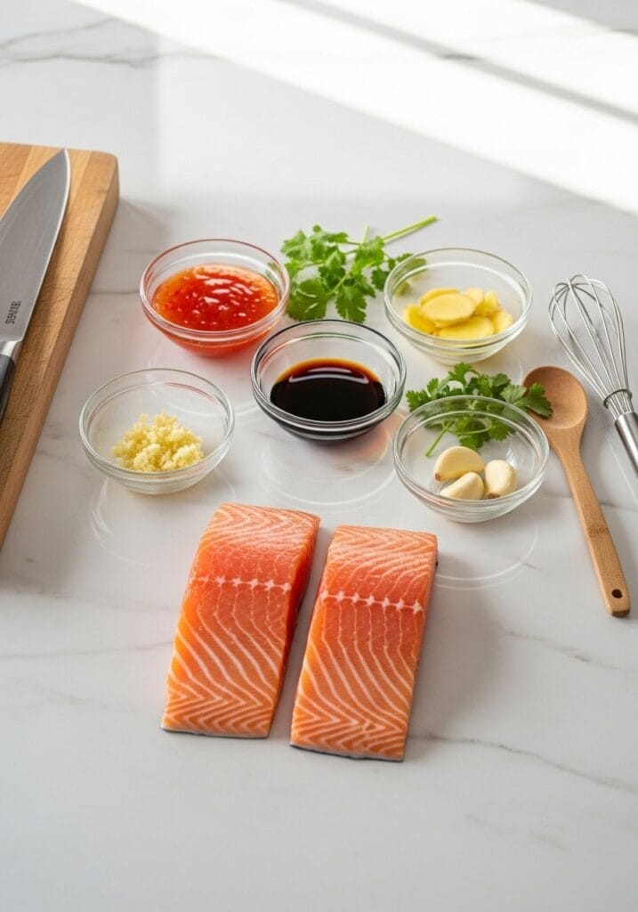 The thickness of your salmon matters more than you’d think. Aim for fillets that are about 2.5cm thick at the thickest part. Thinner pieces cook too quickly and can dry out before the glaze caramelizes properly.