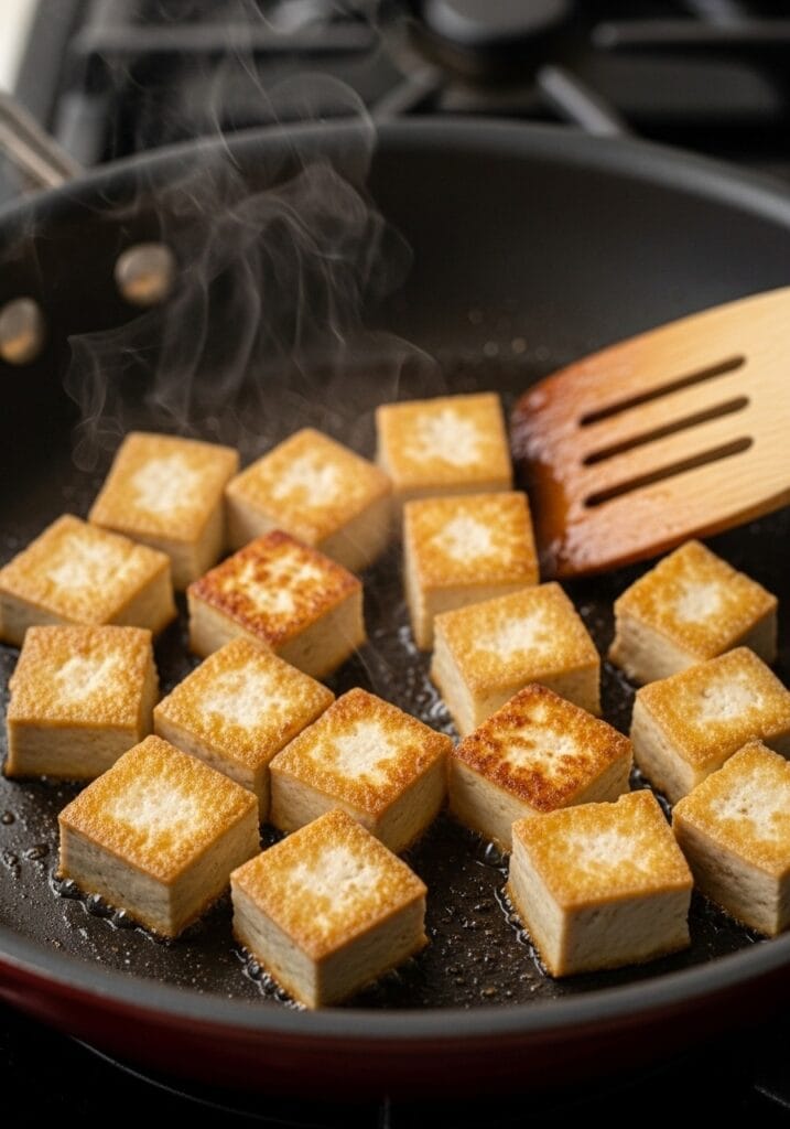 Overcrowding the pan: If the tofu pieces are too close together, they’ll steam instead of fry. Cook in batches if needed to ensure each piece has space to get crispy.