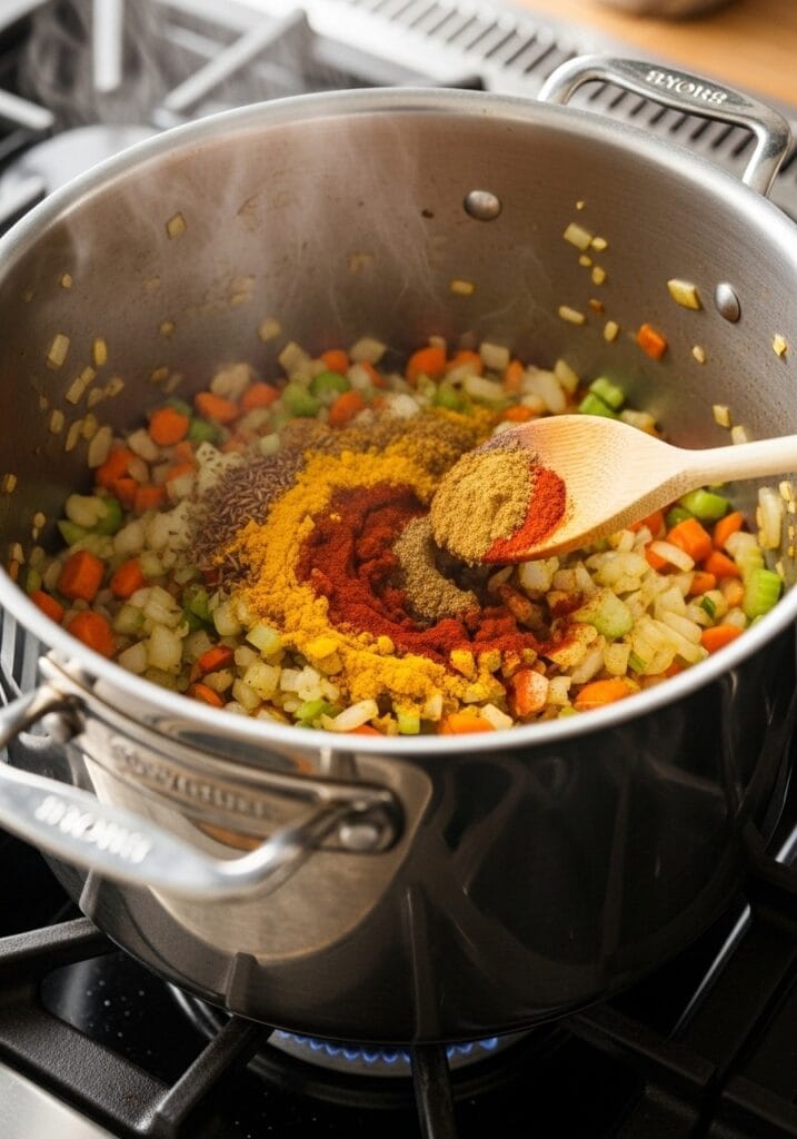 Sprinkle in cumin, nutmeg, cinnamon, and thyme. Stir for 30 seconds to toast the spices. This releases their essential oils and makes the soup more aromatic. Don’t skip this step – it makes a noticeable difference.